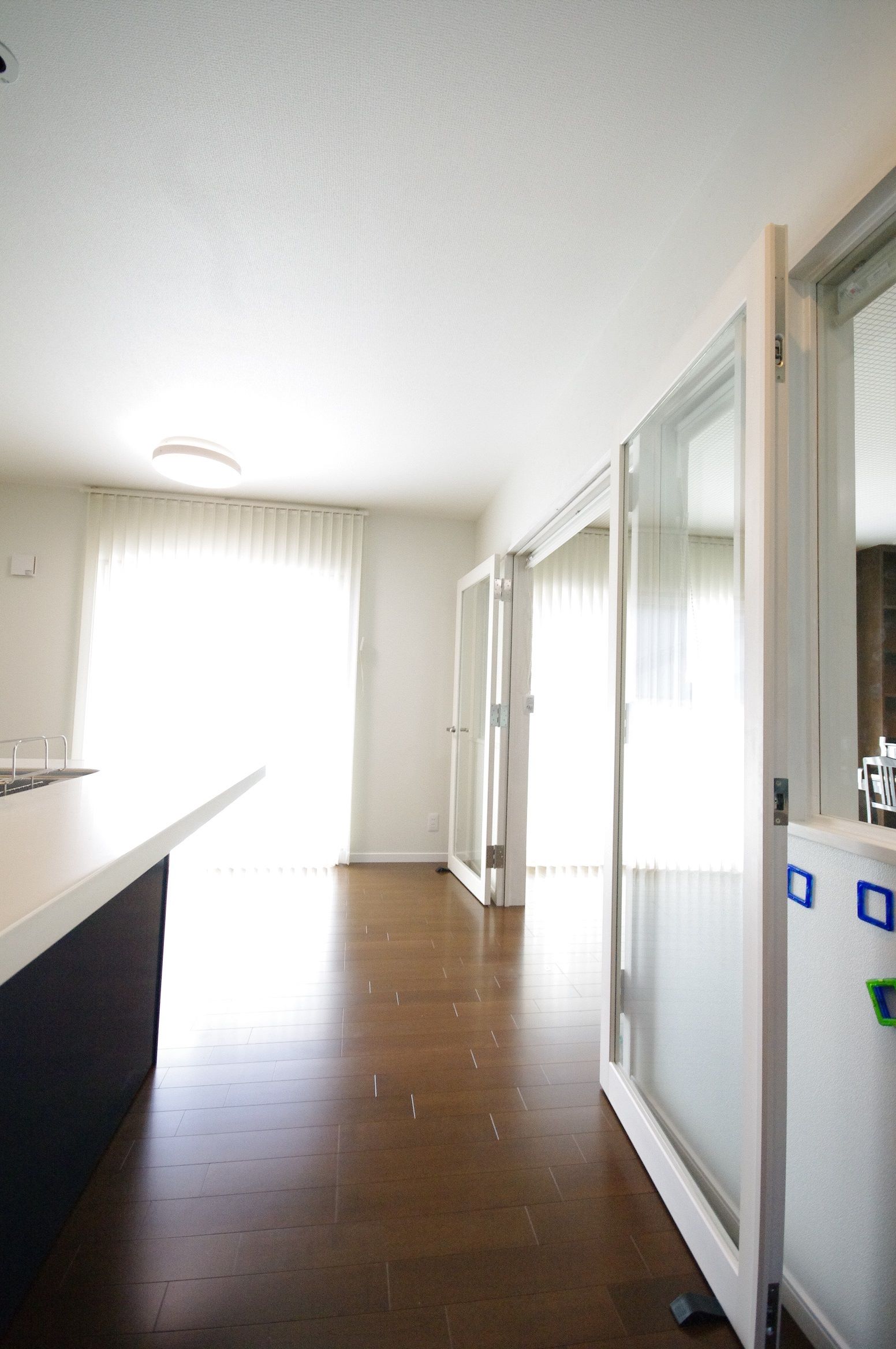 風が抜け太陽光が降り注ぐ明るいグランドピアノがあるリビング