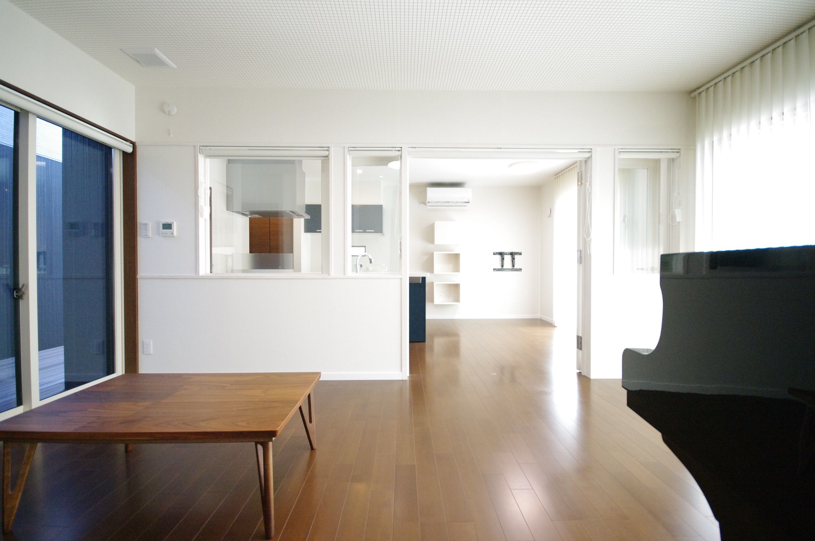 中庭から光が差し込み風が通り抜けるリビングに、グランドピアノがある家をつくりました!